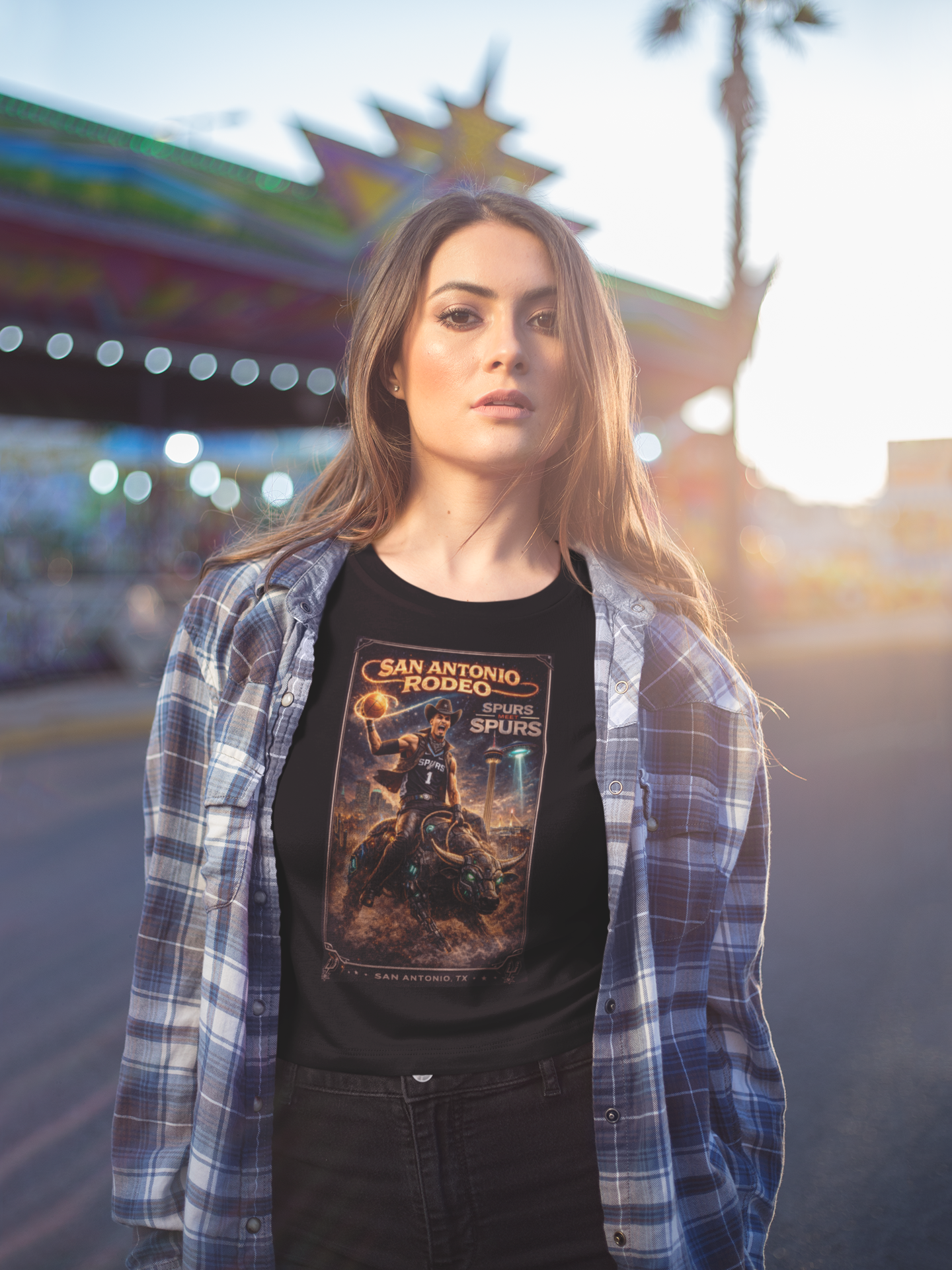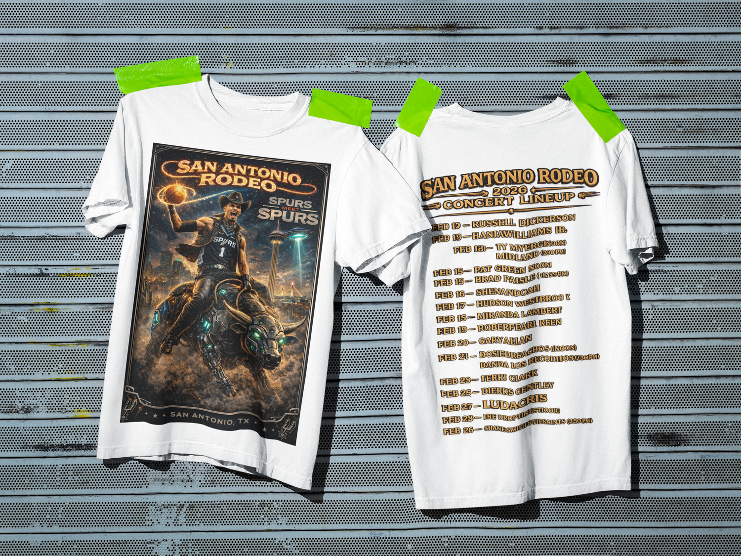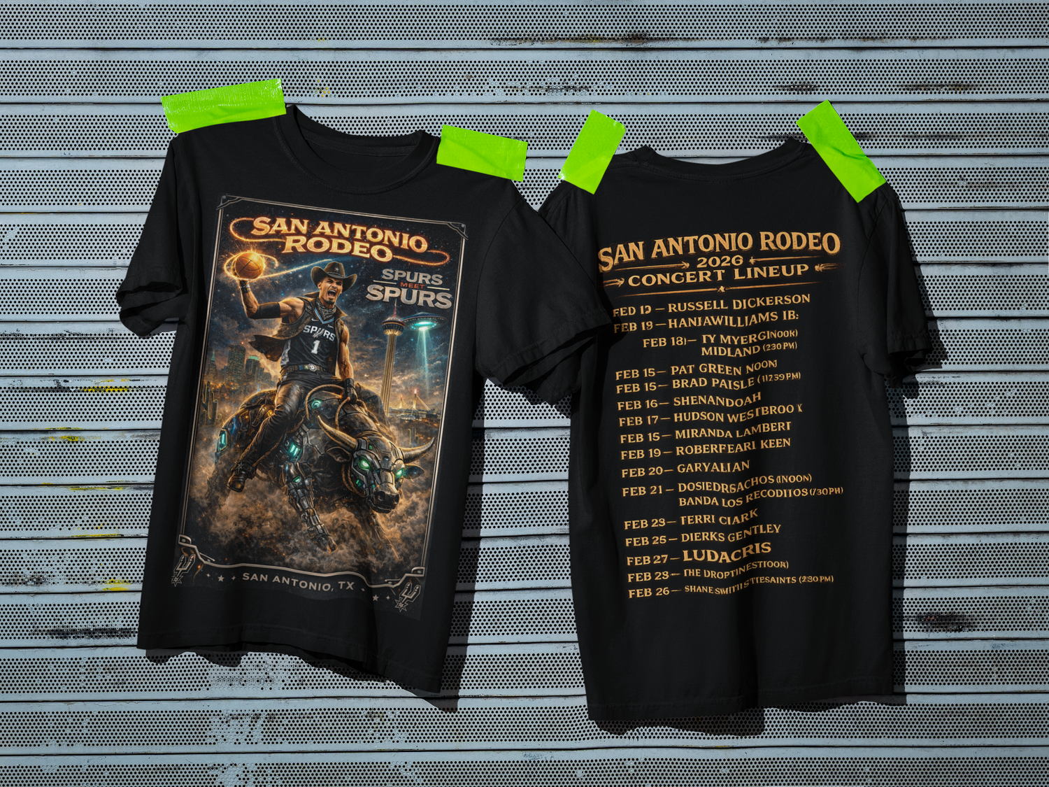 Featuring a bold front rodeo- inspired graphic with futuristic energy and a full back concert lineup, this tee blends tradition with Close Encounters attitude.